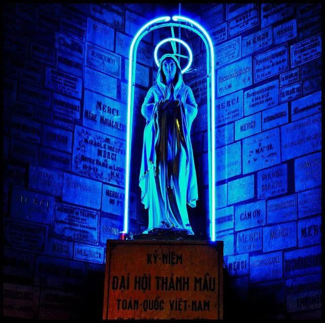 Via Bluesky, this Vietnamese statue of the Virgin Mary is cyberpunk af. https://bsky.app/profile/sharonk.bsky.social/post/3mbbx6akko22r